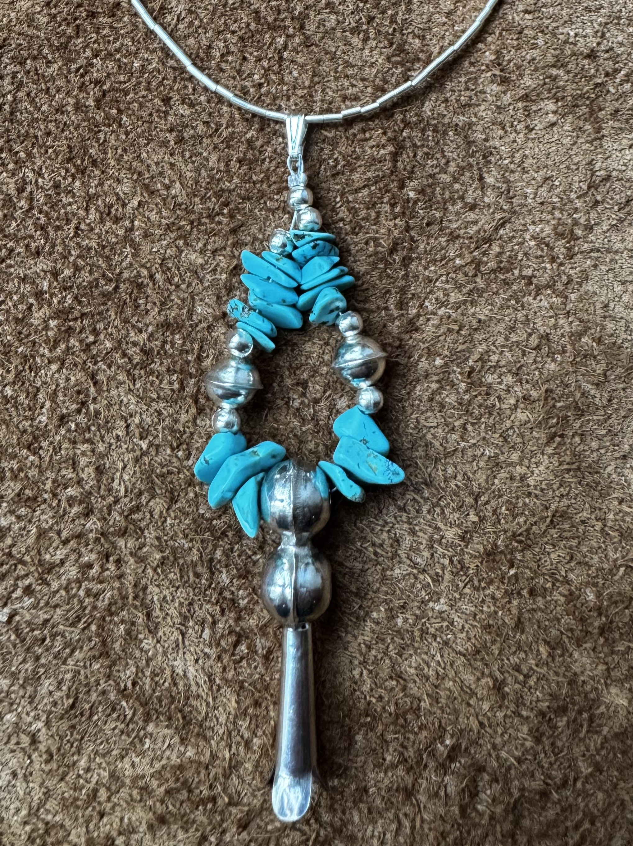 Navajo Anhänger mit typischem, handgearbeitetem Squash Blossom Bead,