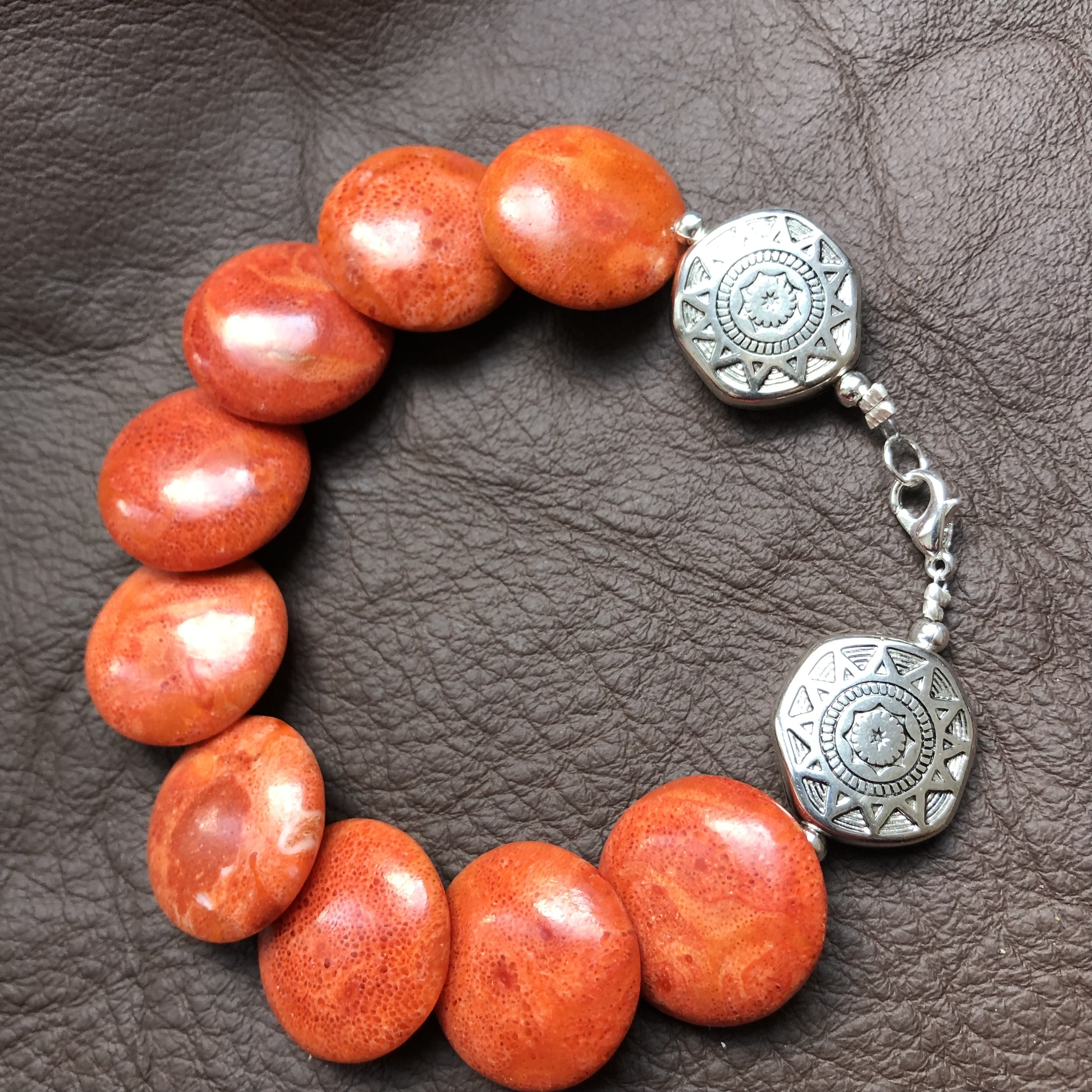 handgearbeitetes Korallenarmband mit schönem Abschluß Sonnensymbol,