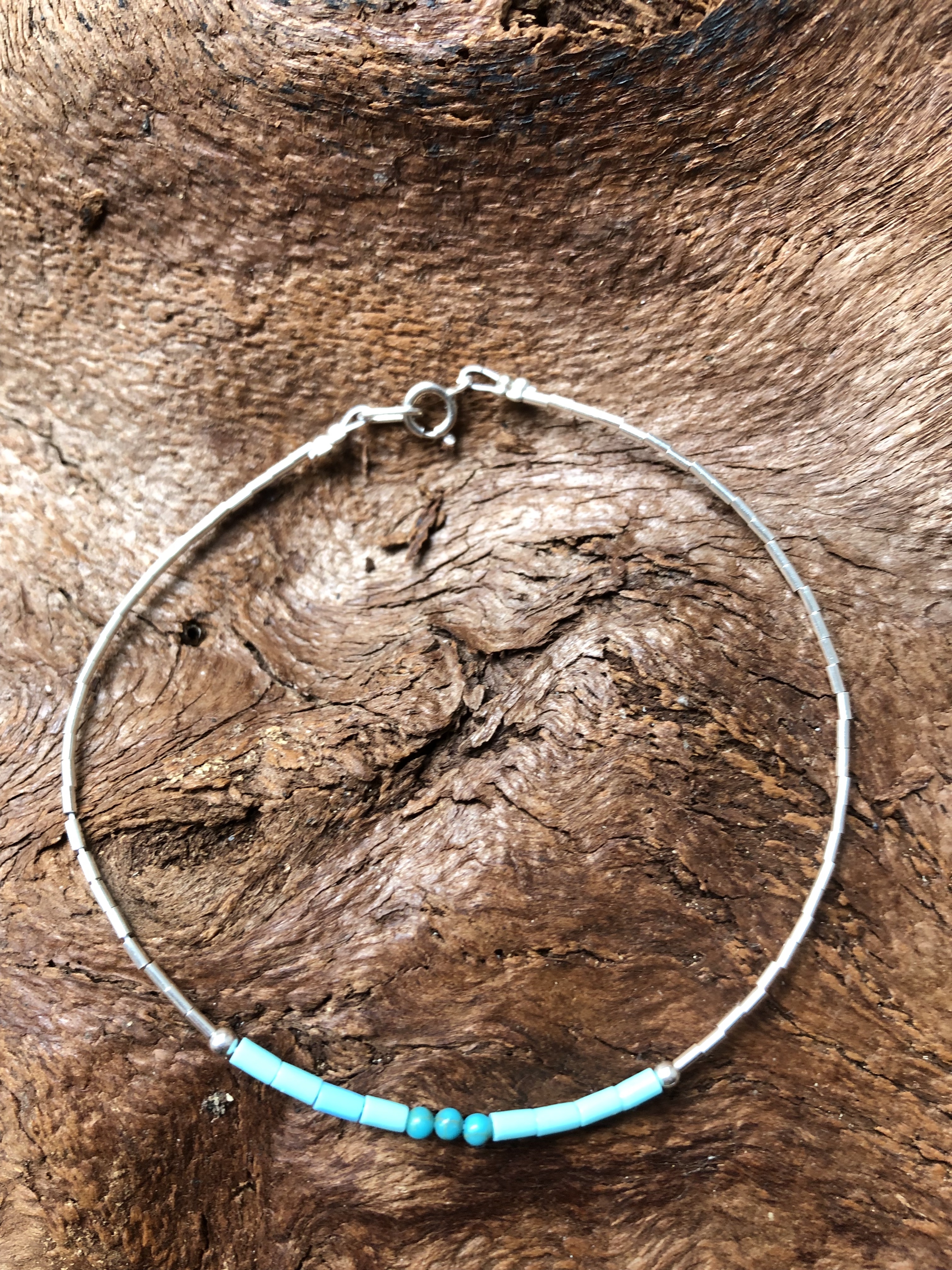 handgearbeitetes Indianerschmuck Armband in 925 er Silber mit Türkis.