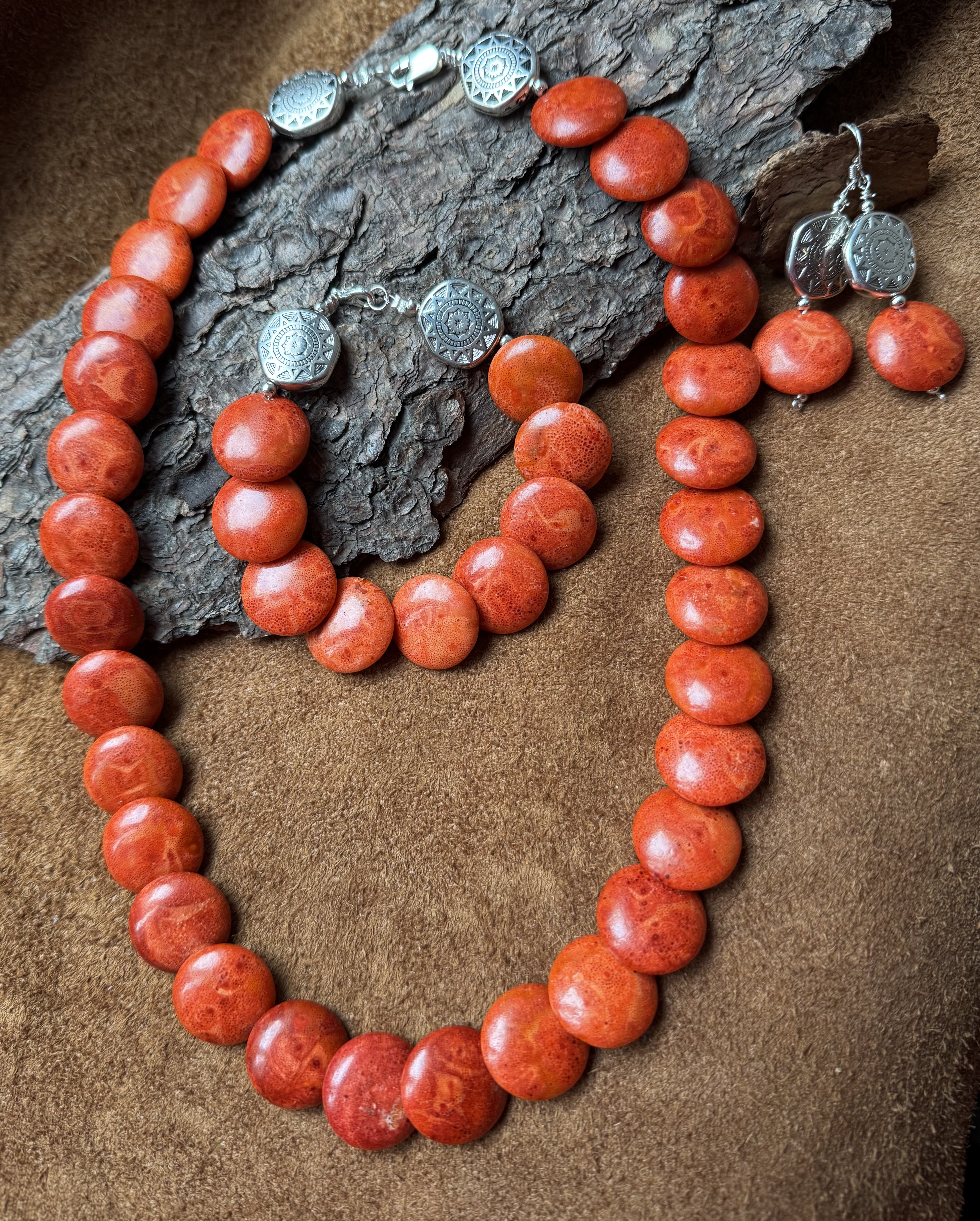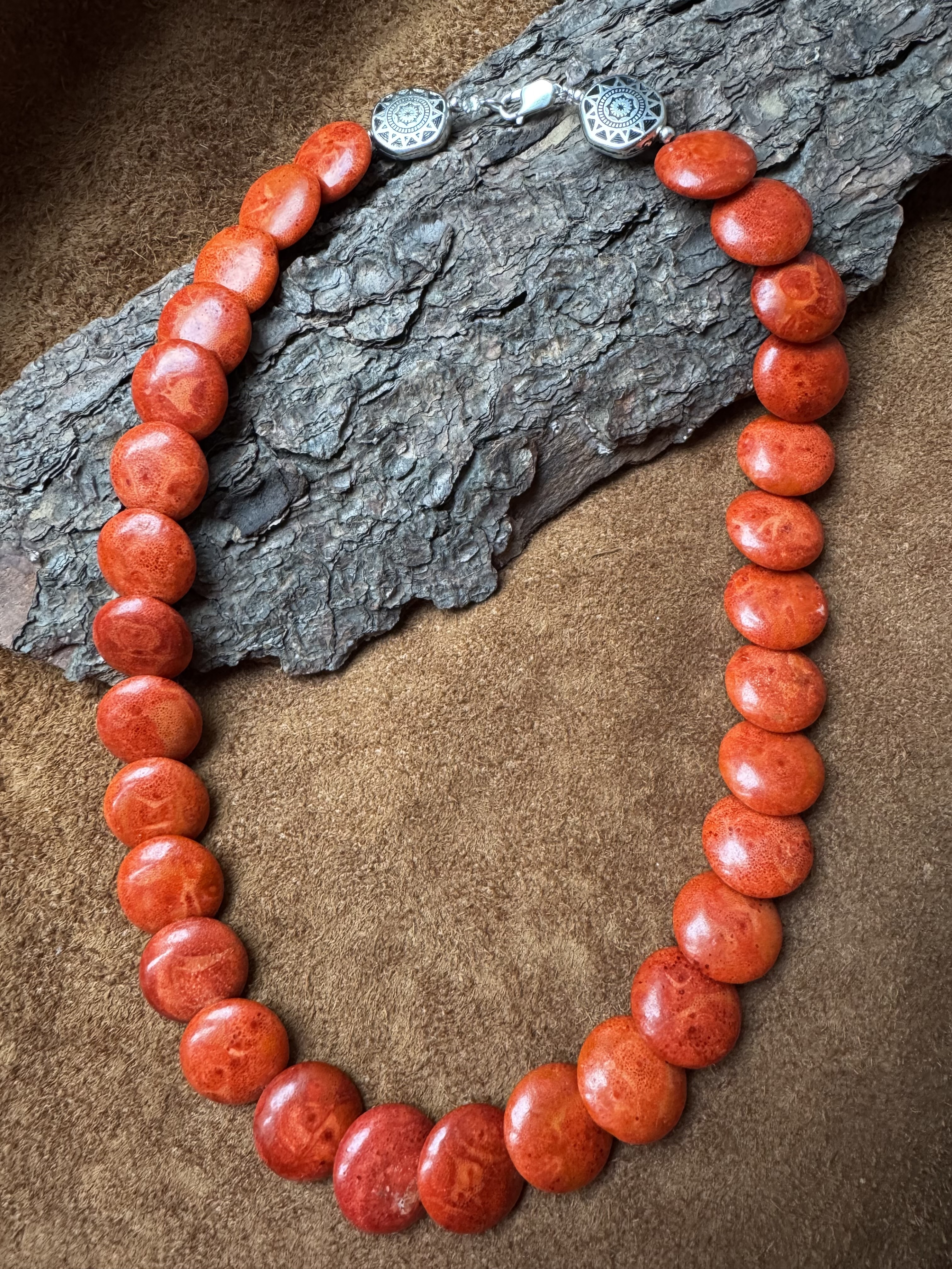 handgearbeitetes Korallencollier mit schönem Abschluß Sonnensymbol,