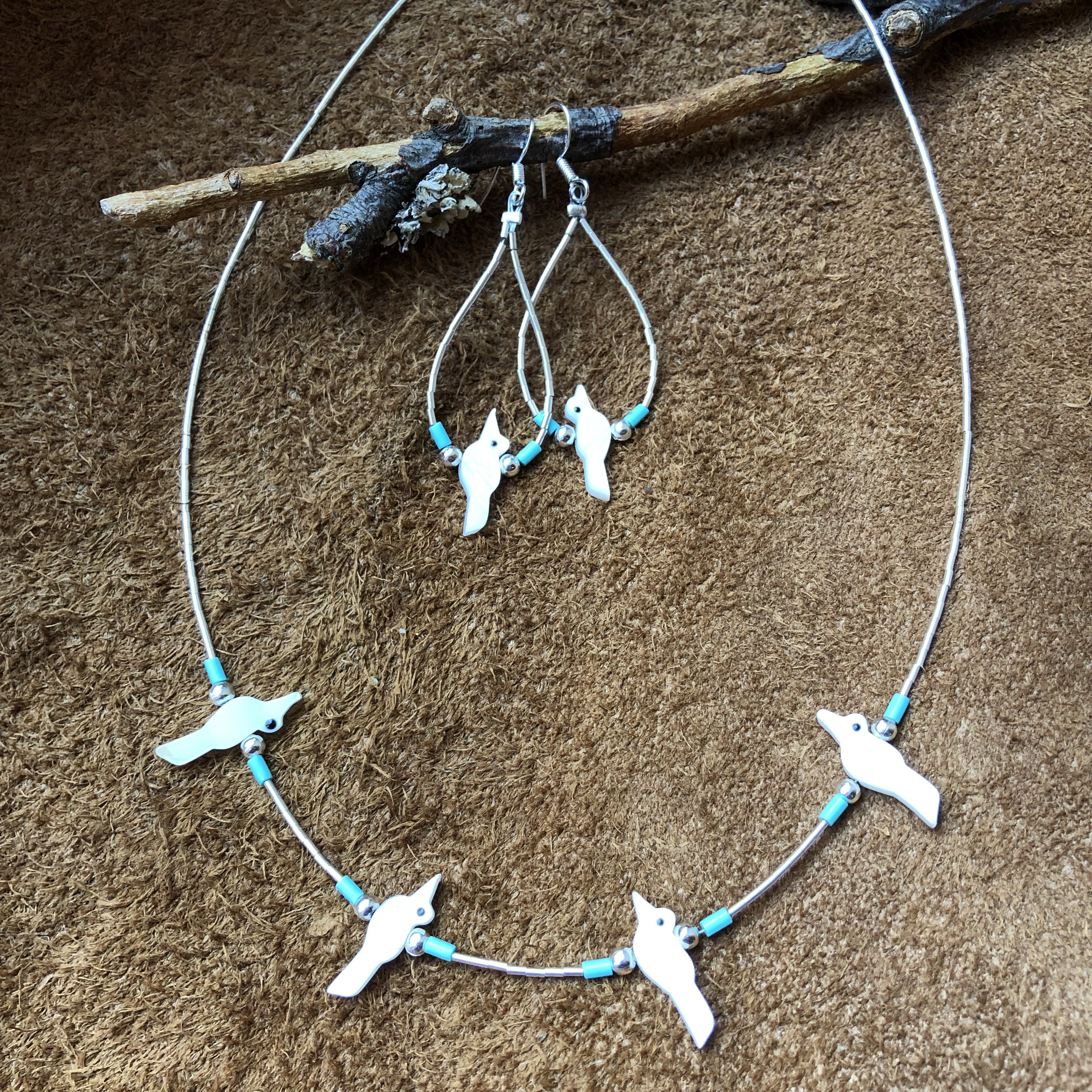 mit handgeschliffenen Vögeln aus Perlmutt.