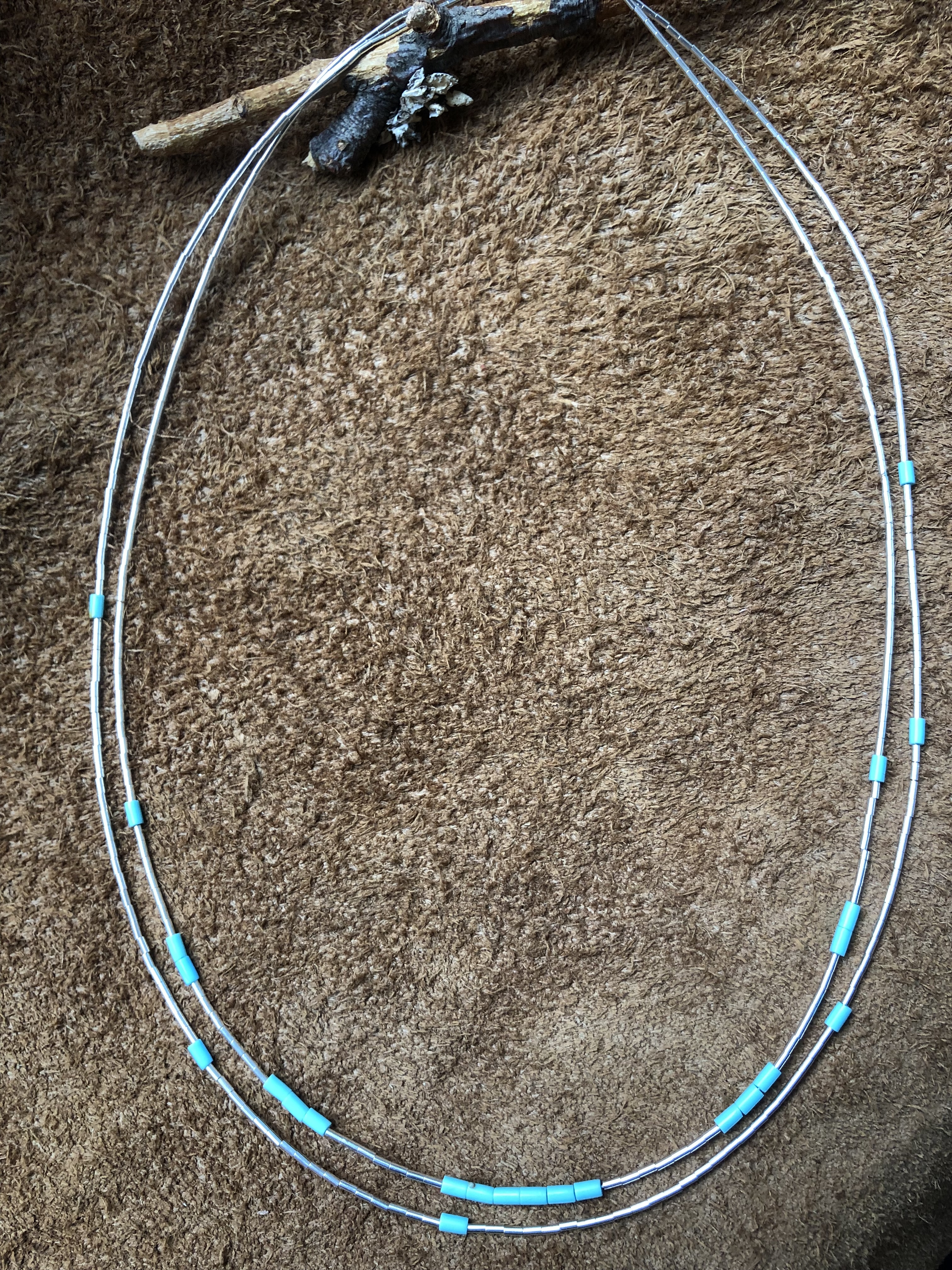 feine, handgearbeitete 2-reihige Liquid Silber Kette