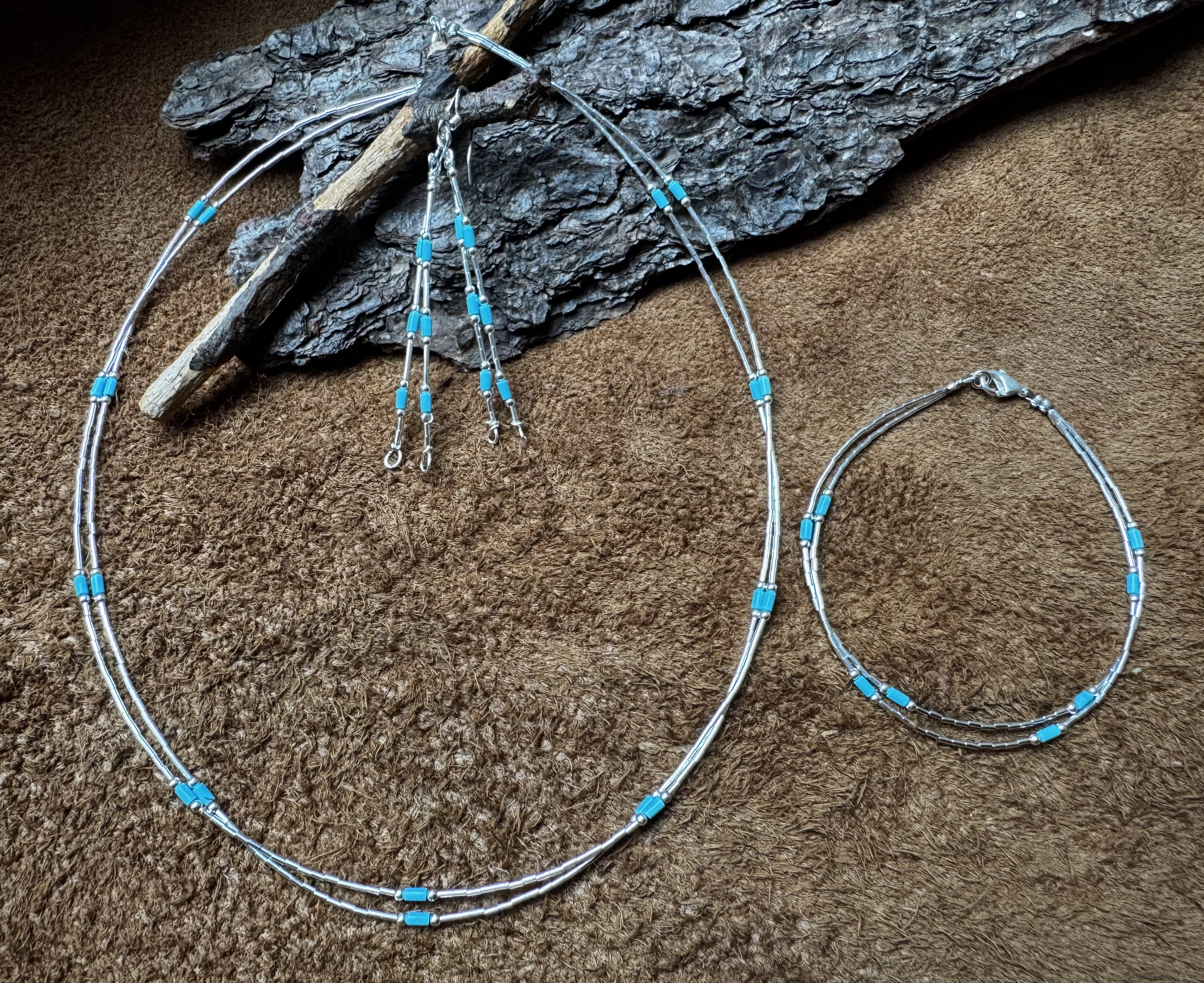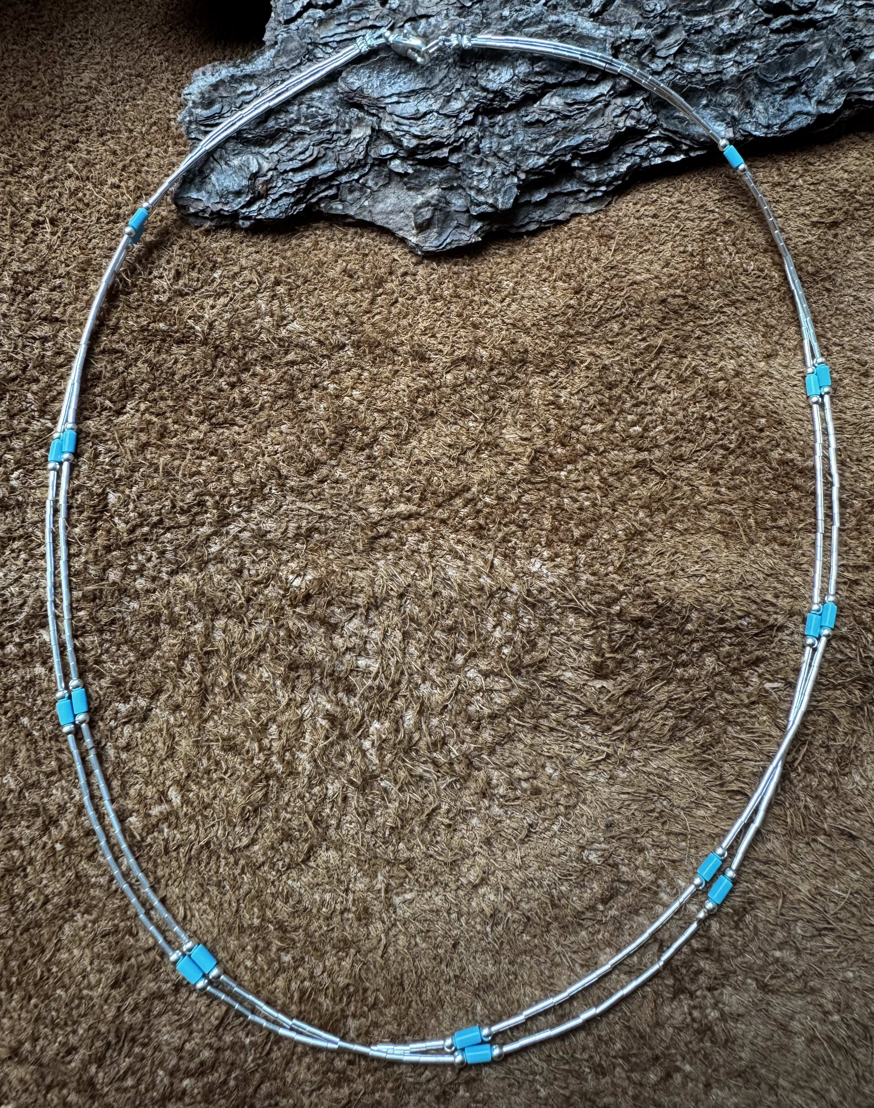 handgearbeitete, zweisträngige Liquid Silver Kette,