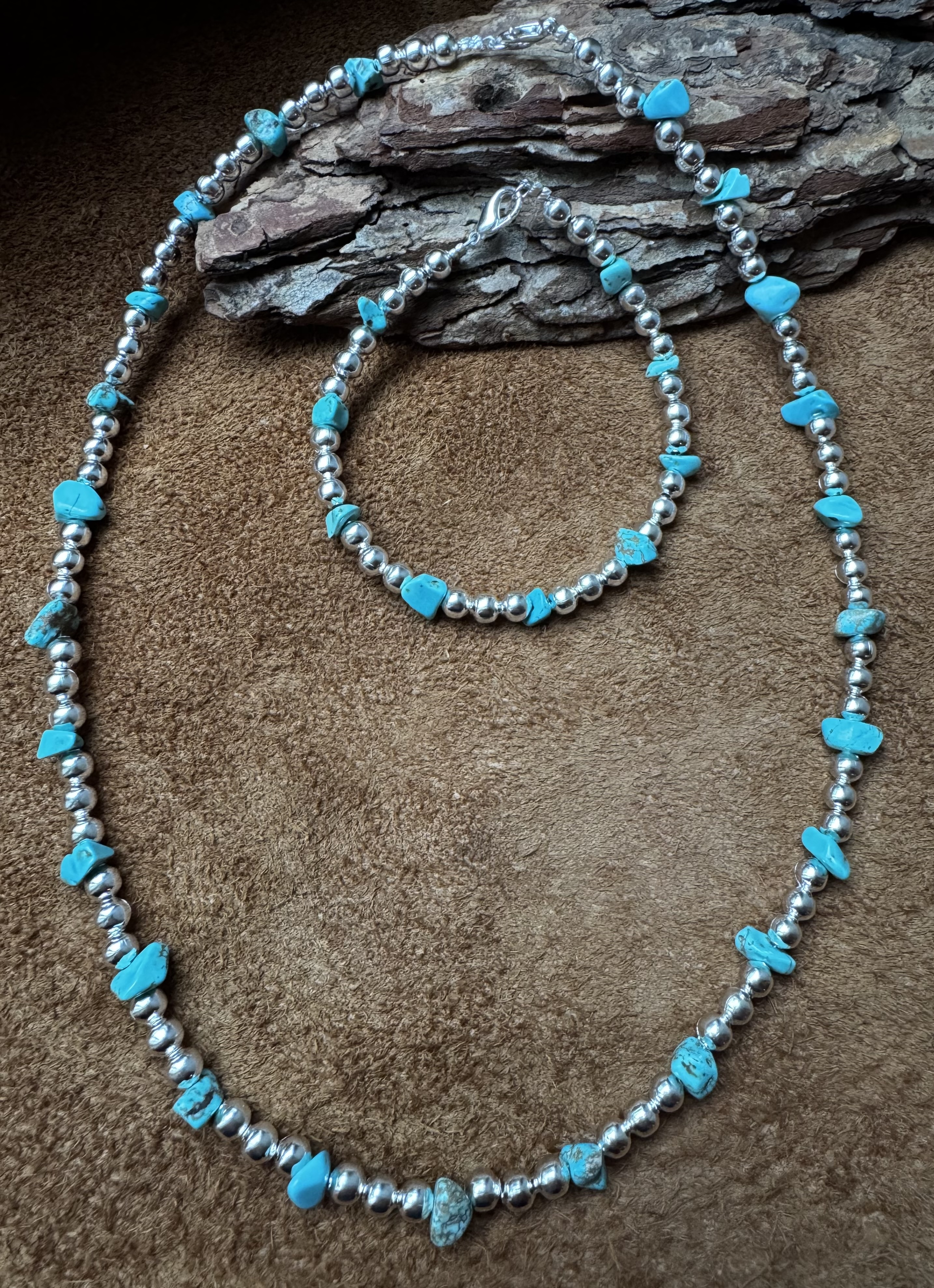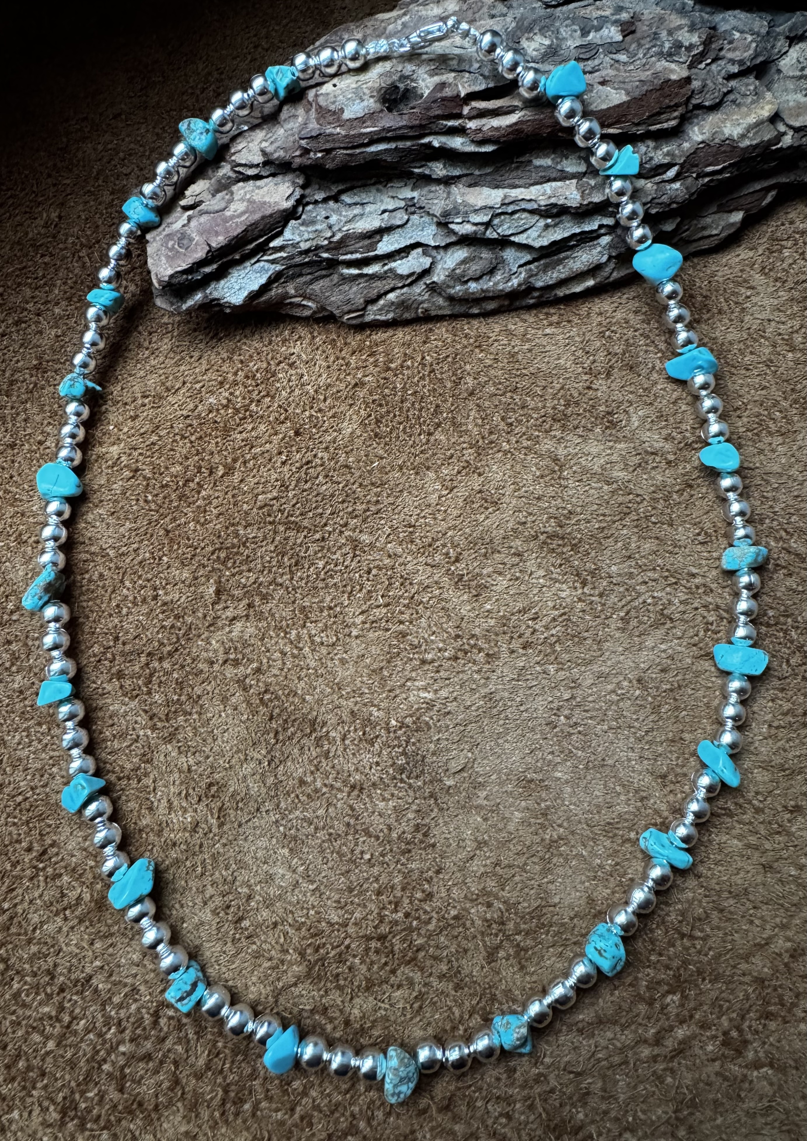 handgearbeitete Navajo Silberperlenkette mit Türkisnuggets,