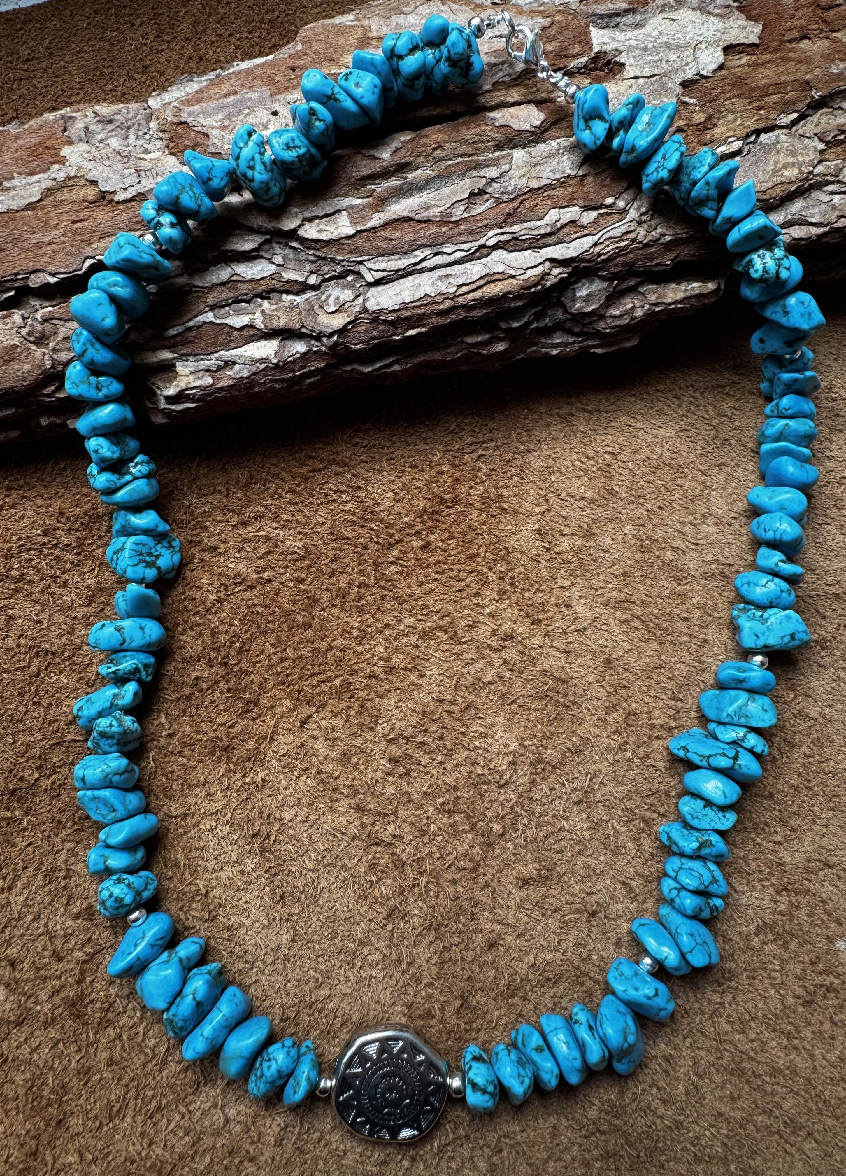 handgearbeitete Türkiskette mit Sonnensymbol(925),