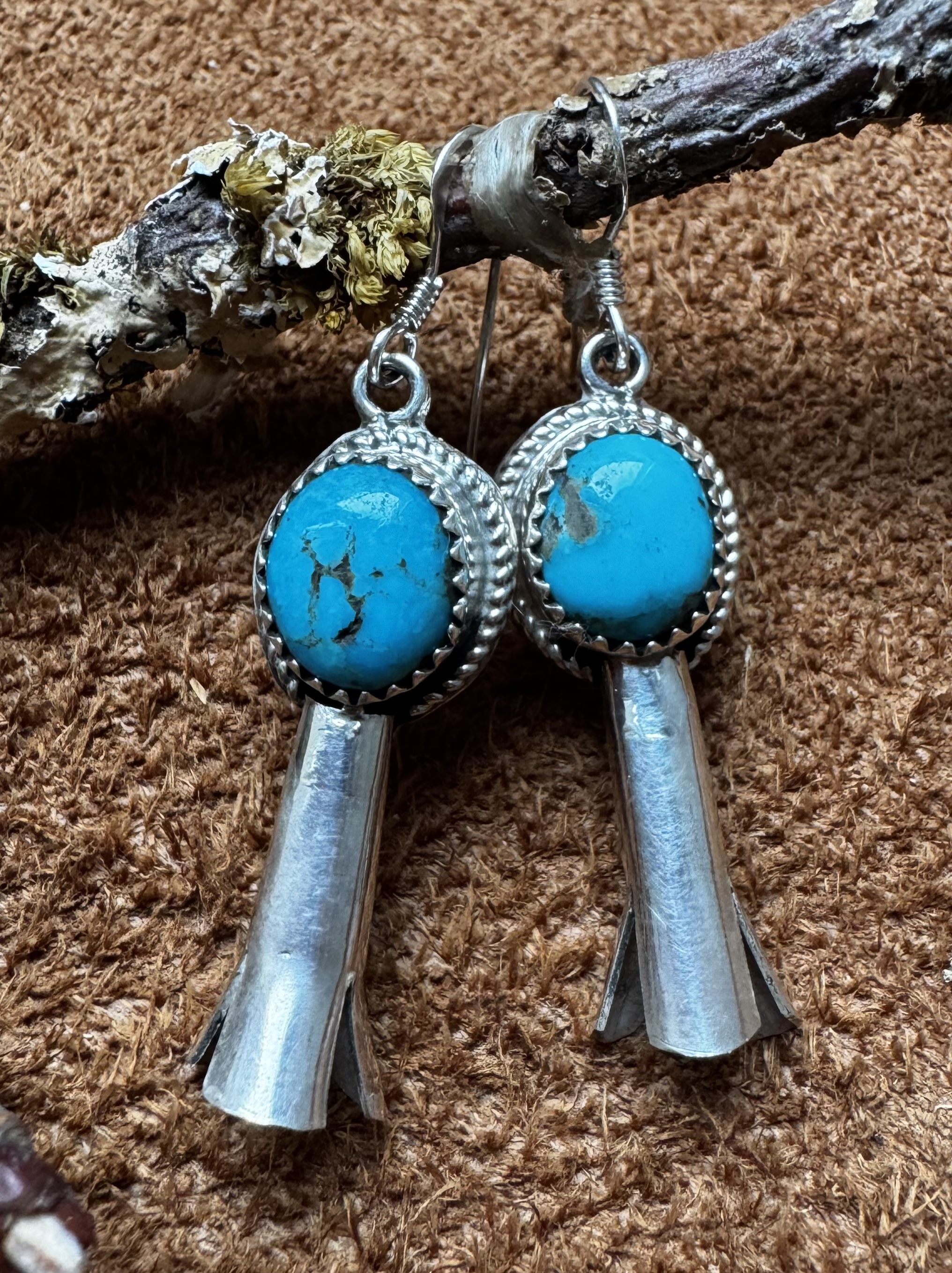 traditionelle, handgearbeitete Navajo Squash Blossom Ohrringe,
