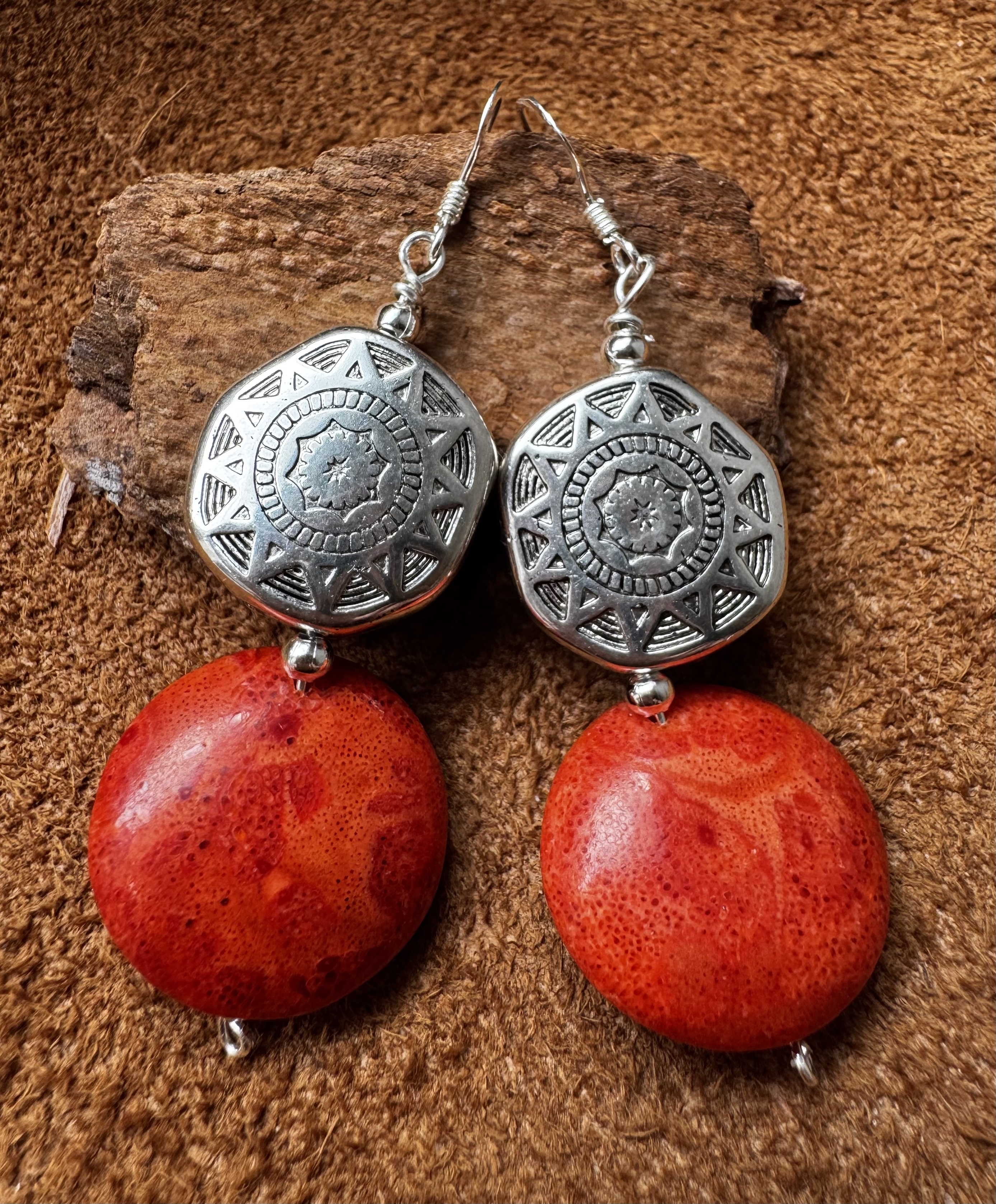 handgearbeitete Navajo Ohrringe "Sonnensymbol",