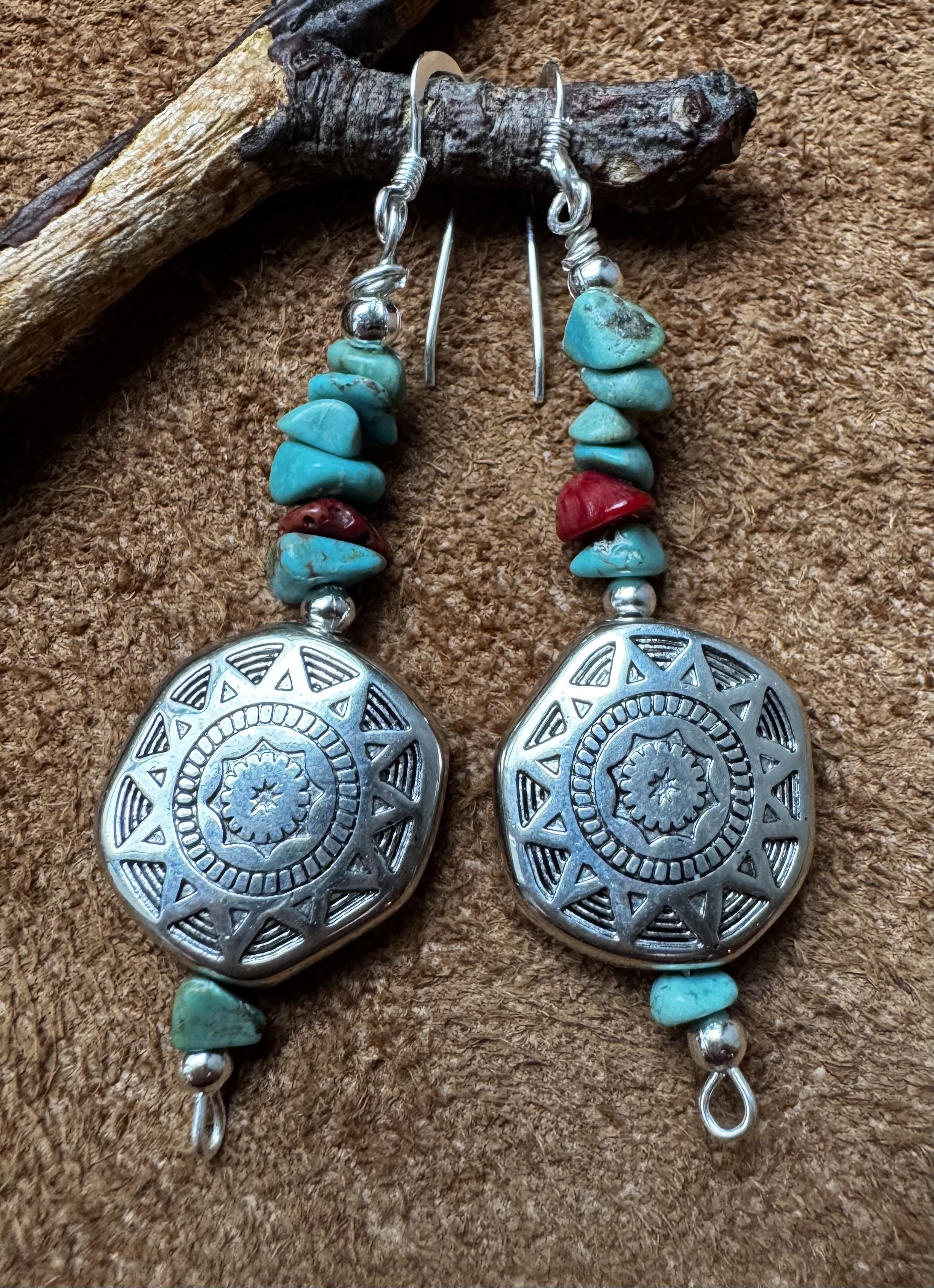 hübsche, handgearbeitete Indianerschmuck Ohrringe "Sonnensymbol",