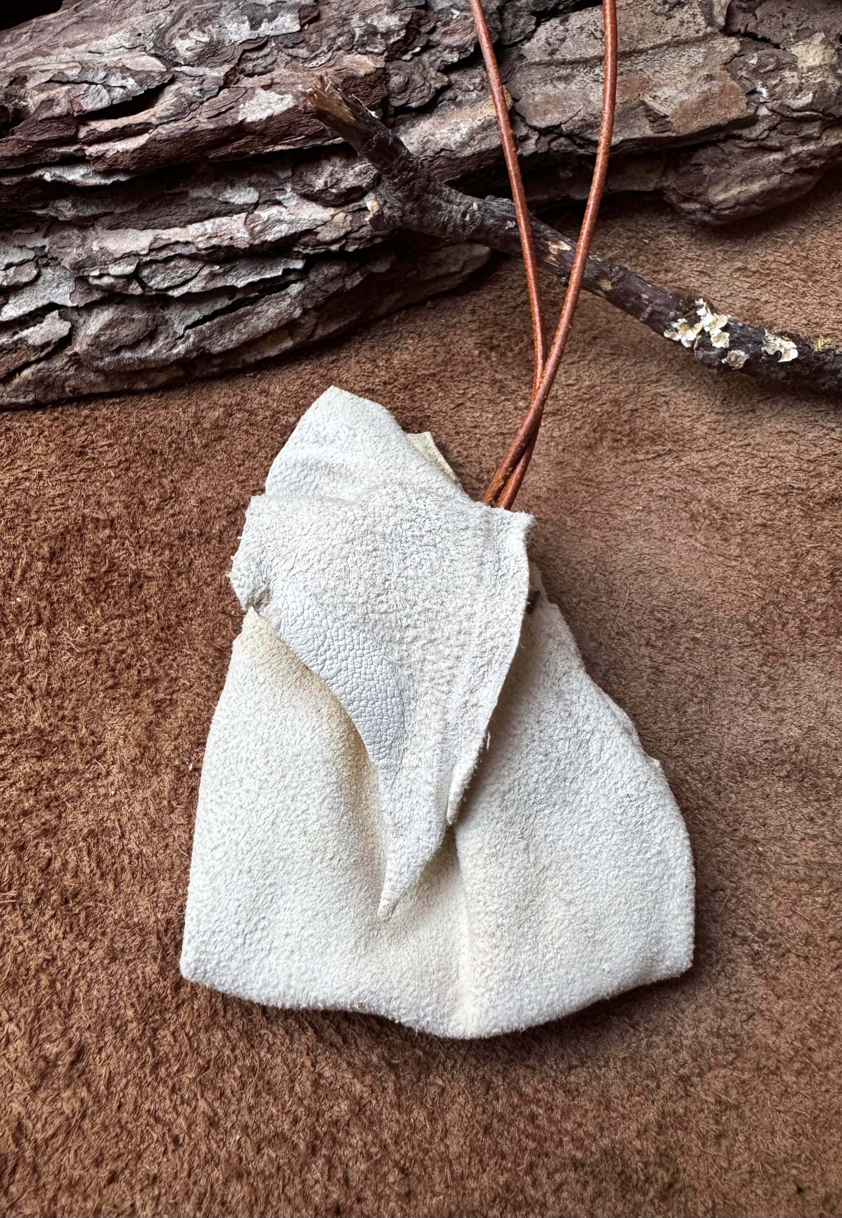 kleiner, handgearbeiteter Medizinbeutel aus Hirschleder,